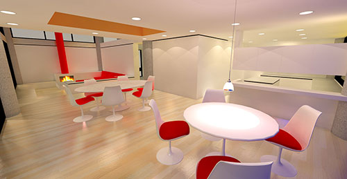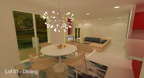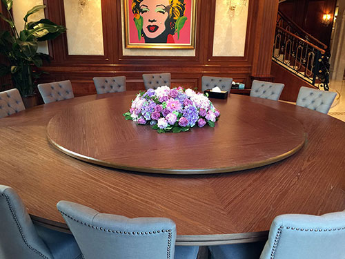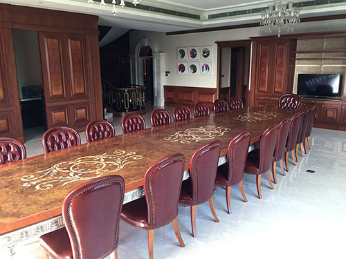 (left) house A - conference room - custom inlaid table to accommodate 24 people |