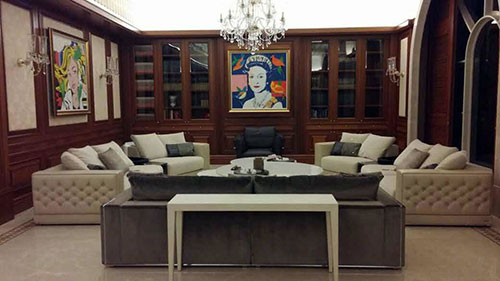 the program is a complete interior upgrade as well as the addition of a Hollywood-class home theater. this is a complete departure and not representational from my usual modern, minimalistic style but is what the client needs: an over-the-top grandeur to impress guests and VIPs from mainland china. |